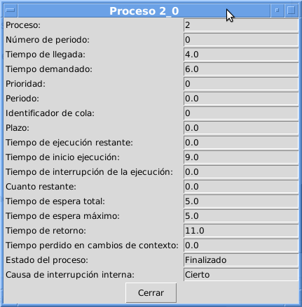 Para conocer los detalles de un proceso basta hacer click con el botón izquierdo del ratón sobre él (en cualquiera de las colas y en cualquier momento, no tiene porqué haber finalizado la simulación):